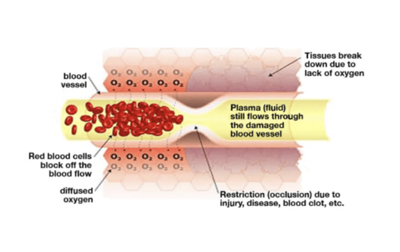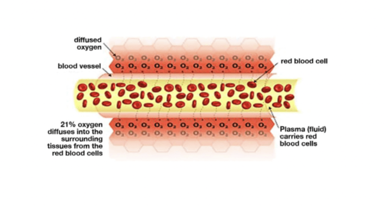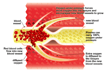 Normally it is the red blood cells which distribute the oxygen we breathe in to the tissues in our bodies, however with hyperbaric oxygen therapy the increased pressure forces oxygen into the blood plasma. When oxygen is dissolved into the plasma this greatly increases the amount of oxygen being taken to our tissues and therefore increases the uptake of oxygen into our cells. Oxygen is needed to complete the metabolic processes in each one of our cells.
